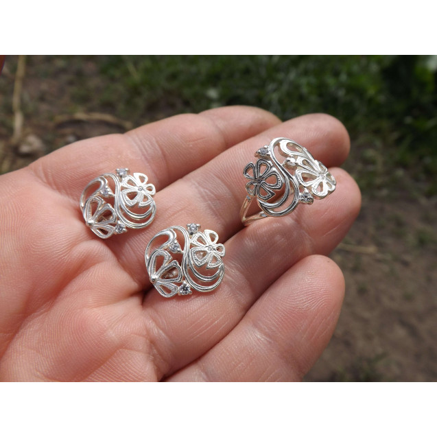 Гарнитур Серебряное Кольцо 15292 / Серебряные Серьги 25292