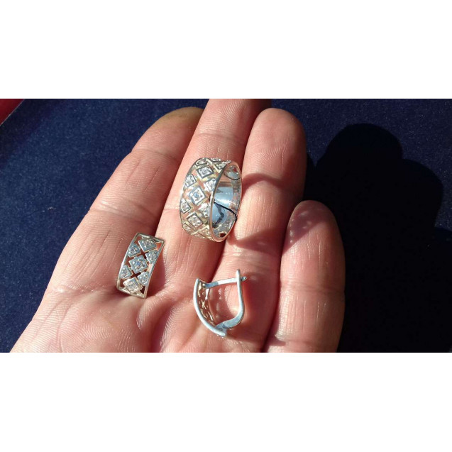 Гарнитур Серебряное Кольцо 15367 / Серебряные Серьги 25367