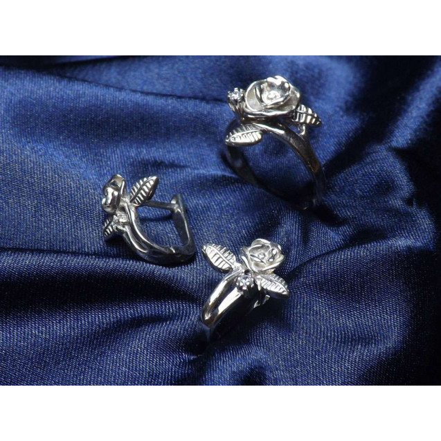 Гарнитур Серебряное Кольцо 15375 / Серебряные Серьги 25375