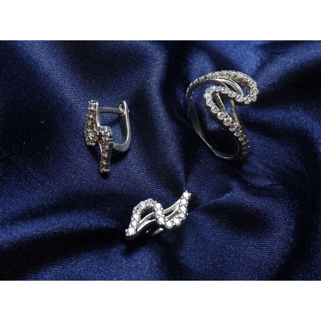 Гарнитур Серебряное Кольцо 15385 / Серебряные Серьги 25385