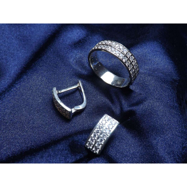 Гарнитур Серебряное Кольцо 15401 / Серебряные Серьги 25401