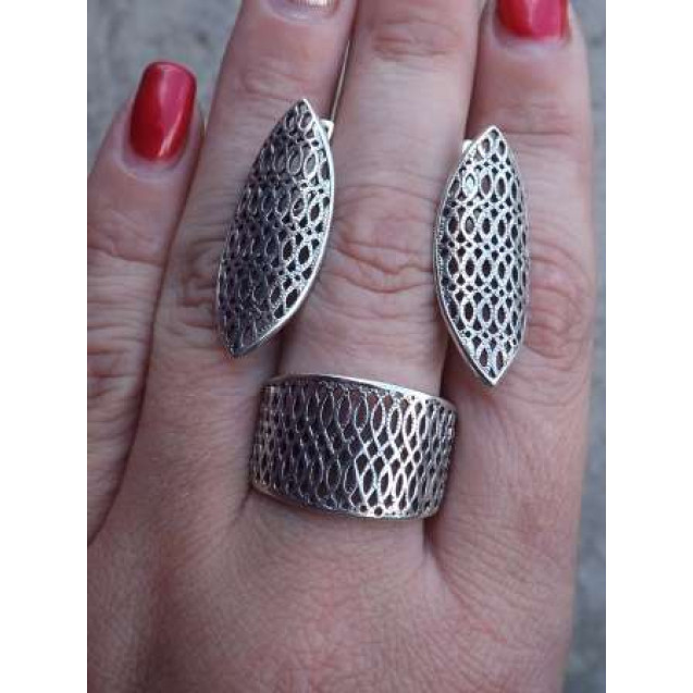 Гарнитур Серебряное Кольцо 15203 / Серебряные Серьги 25203