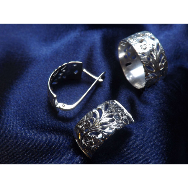 Гарнитур Серебряное Кольцо 15228 / Серебряные Серьги 25228