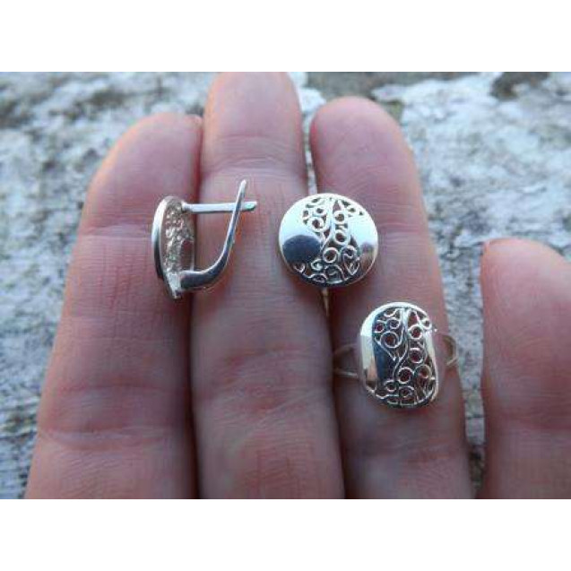 Гарнитур Серебряное Кольцо 15243 / Серебряные Серьги 25243
