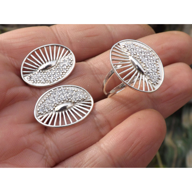 Гарнитур Серебряное Кольцо 15031 / Серебряные Серьги 25031