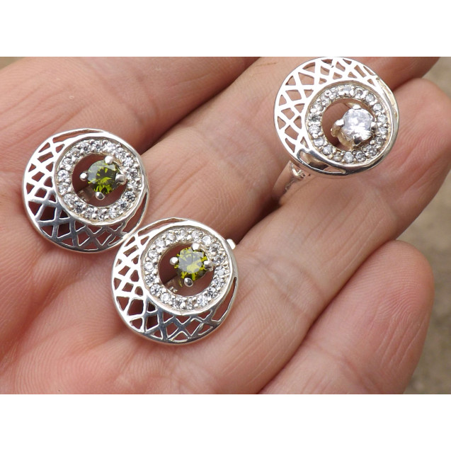 Гарнитур Серебряное Кольцо 15070 / Серебряные Серьги 25070