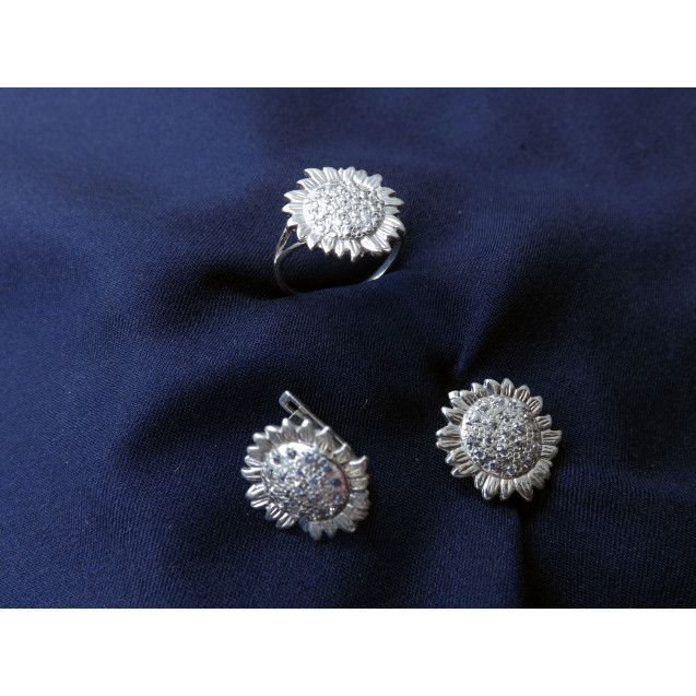 Гарнитур Серебряное Кольцо 15115 / Серебряные Серьги 25115