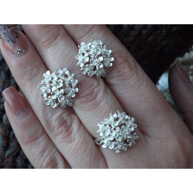 Гарнитур Серебряное Кольцо 15153 / Серебряные Серьги 25153