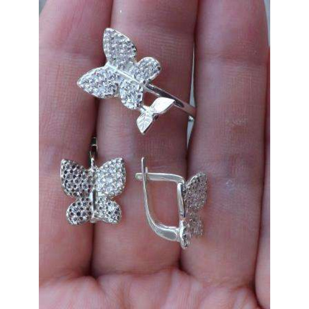 Гарнитур Серебряное Кольцо 15174 / Серебряные Серьги 25174
