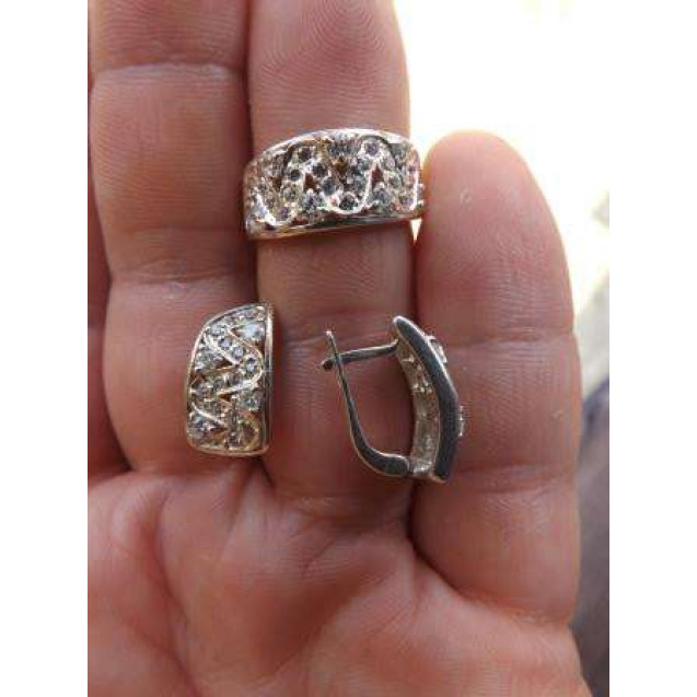 Гарнитур Серебряное Кольцо 15209 / Серебряные Серьги 25209